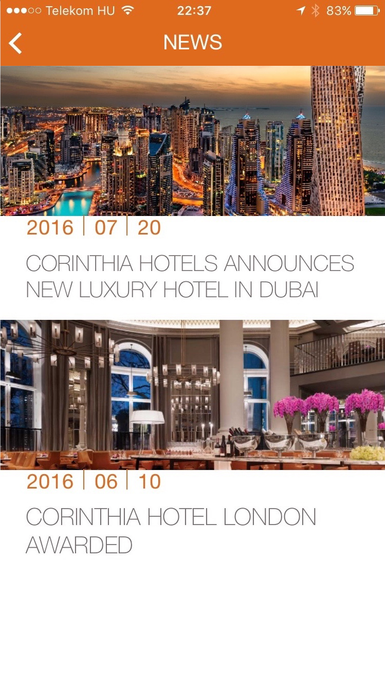 iOS application for the Corinthia hotel's guests. It contains location based contents (promotions, guide), news, general informations.